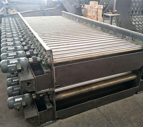 辊筛是针对物料在输送过程中由于物料含有粘性,较小颗粒粘附在筛盘上导致筛盘不能正常的运转,从而导致物料不能正常输送,并且造成筛隙堵塞的基础上设计制造的运输筛分特殊设备。